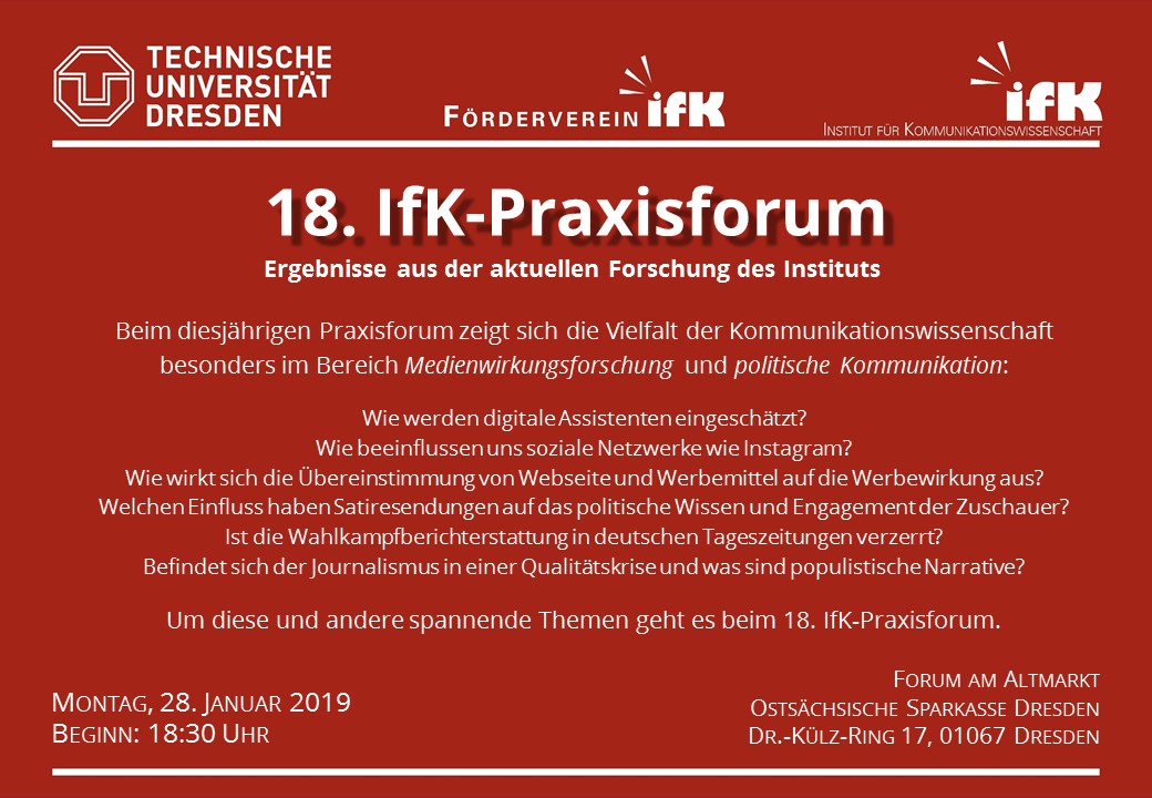 Wir freuen uns sehr, wenn wir Sie beim 18. Praxisforum, am 28.01.2019, ab 18:30 Uhr ins Forum am Altmarkt, Ostsächsische Sparkasse Dresden, Dr. Külz Ring 17, 01067 begrüßen dürfen!